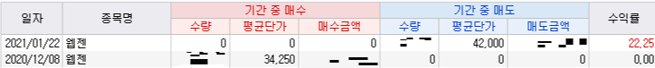 ◎ 보유거래일 : 20.12.08 ~ 21.01.22