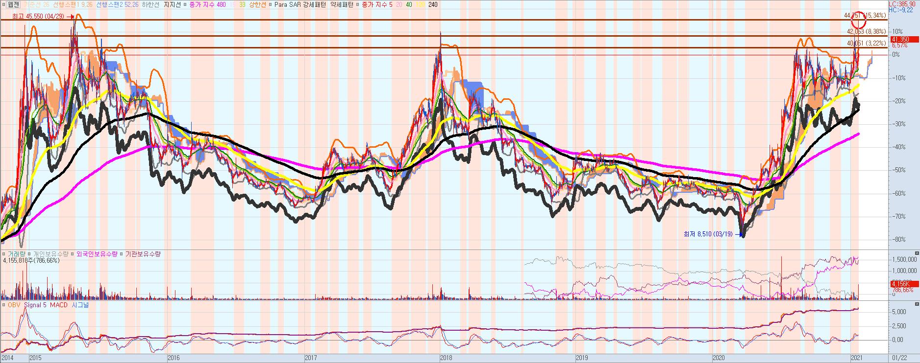 웹젠은 최근 지속적인 박스권을 횡보중이고, 실적이면 실적, 재료면 재료, 더 오를건덕지가 많기 때문에 항상 다시 찾는 맛집과 같은 종목입니다. 이번에 영요대천사의 선방과 2월중 전민기적2 출시기대 등이 있기때문에 홀딩 포지션을 유지하려고 했는데, 45,550의 매물만 뺏고 내려오는 모습을 보고 일단 후퇴하는 심정으로 매도하였습니다.