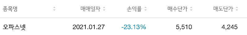 ◎ 손 익 률 : -23.13%
