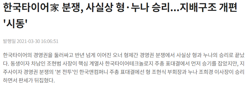 저는 한국타이어앤테크놀로지가 최근 완연한 우상향 추세를 이어가고 있고, 경영권 분쟁 수혜를 볼까 하고 들어갔는데요, 대한항공이 경영권분쟁 후 폭등하는걸 보고 한국타이어도 경영권 분쟁을 호재로 삼을지가 관건이었습니다.