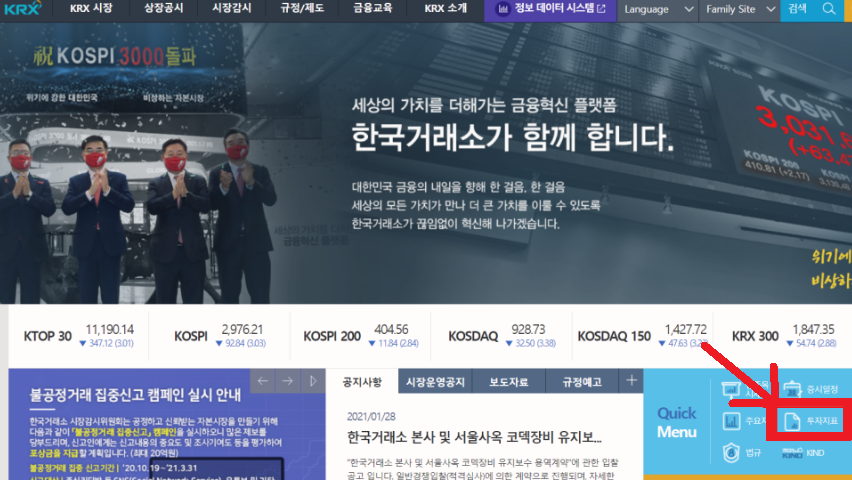 1. 한국거래소로 웹사이트 http://www.krx.co.kr/ 접속