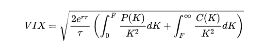 빅스(VIX)지수는 매수호가와 매도호가의 중간가격을 기초로 해서 매겨진다고 하는데요, 아래와 같은 공식으로 계산된다고 합니다.