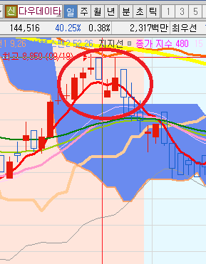 위는 다우데이터의 차트입니다. 짧은기간 하락장악형 패턴이 두번 연달아 나왔네요. 여지없이 하락했습니다.