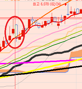 위 차트를 보면 하락장악형 패턴이 나왔지만 이후로 쭉 상승했습니다. 주식, 특히 차티스트들은 어디까지나 확률에 배팅하는 것이니까 이럴 때도 있는 겁니다.
