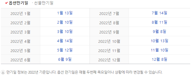 우리나라의 2022년 옵션만기일은 아래와 같습니다.