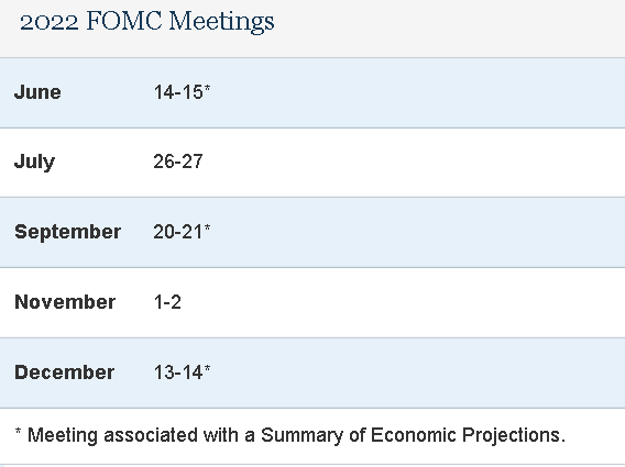 그렇다면 앞으로 남은 2022년 하반기 FOMC 회의 일정은 언제일까요?