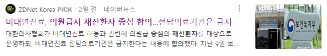 이 뉴스에 힘을 보태기라도 하는 듯 대한의사협회와 보건복지부는 의료현안협의체의 제 2차 회의에서 비대면진료 허용과 관련해 의원급 중심의 재진환자를 대상으로 운영하되, 비대면진료 전담의료기관은 금지한다는 내용에 합의했습니다. 뭐든지 시작이 어려운법, 비대면진료의 물꼬가 텄으니 언젠가는 홍수가 범람하지 않을까 한가닥 희망이 생겼습니다.