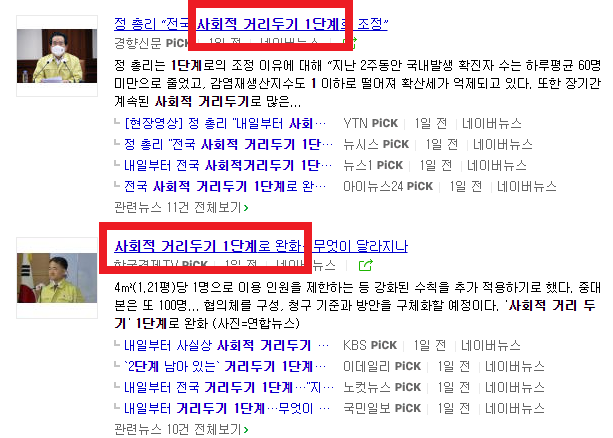 ▶ 사회적 거리두기 1단계 ◀