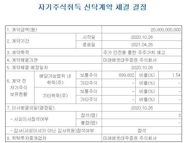 이는 서울반도체의 주식가격이 본인들이 생각하는 가치보다 낮게 평가되었다는 자신감의 표출로 주주가치 제고를 위한 것일수 있습니다. 보통은 호재로 작용하는 것이 이 자사주 매입인데요, 좋은 주가 흐름속에 자사주매입을 한다는 것은 자사제품에 자신감을 표현한 것으로 볼수 있겠습니다. 물론 이를 통해 기관이나 외인들이 물량을 쏟아내어 악재로 작용할 수도 있으니 항상 주의를 요합니다.