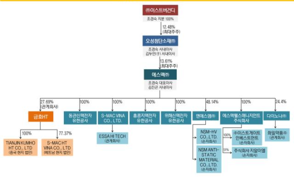 에스맥은 2004년 설립되어 휴대폰을 비롯한 각종 IT기기에 적용되는 입력모듈, 터치스크린 패널의 주요 원자재인 ITO 센서 등의 생산 및 판매업을 주요 사업으로 영위하고 있습니다. 휴대폰 등 모바일기기의 입력장치에 사용되는 휴대폰용 Module을 개발,생산하여 국내외 업체(삼성전자, 동우화인켐 등)에 판매를 하고 있으며, 2020년 9월 기준 (주)다이노나는 관계기업에서 종속기업으로 편입되었습니다.